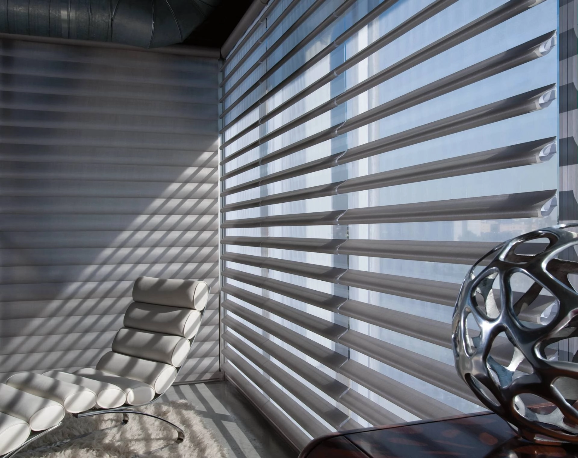 Effortlessly chic and distinctly versatile, Pirouette® Sheer Shades are the epitome of modern design combined with exceptional light control. Compared to Silhouette® Sheer Shades, these innovative sheers showcase opaque fabric vanes that appear to float gracefully off one sheer panel, opening up to softly filter light or closing for more privacy. These shades come in an impressive array of colors, fabrics, and textures, offering endless possibilities to personalize your interior spaces. Choose the ClearView™ option for exceptional unobstructed outdoor views while still enjoying the benefits of UV protection and reduced glare. Discover the artistry of light with Pirouette® Sheer Shades and experience the captivating allure of soft illumination without compromising privacy.