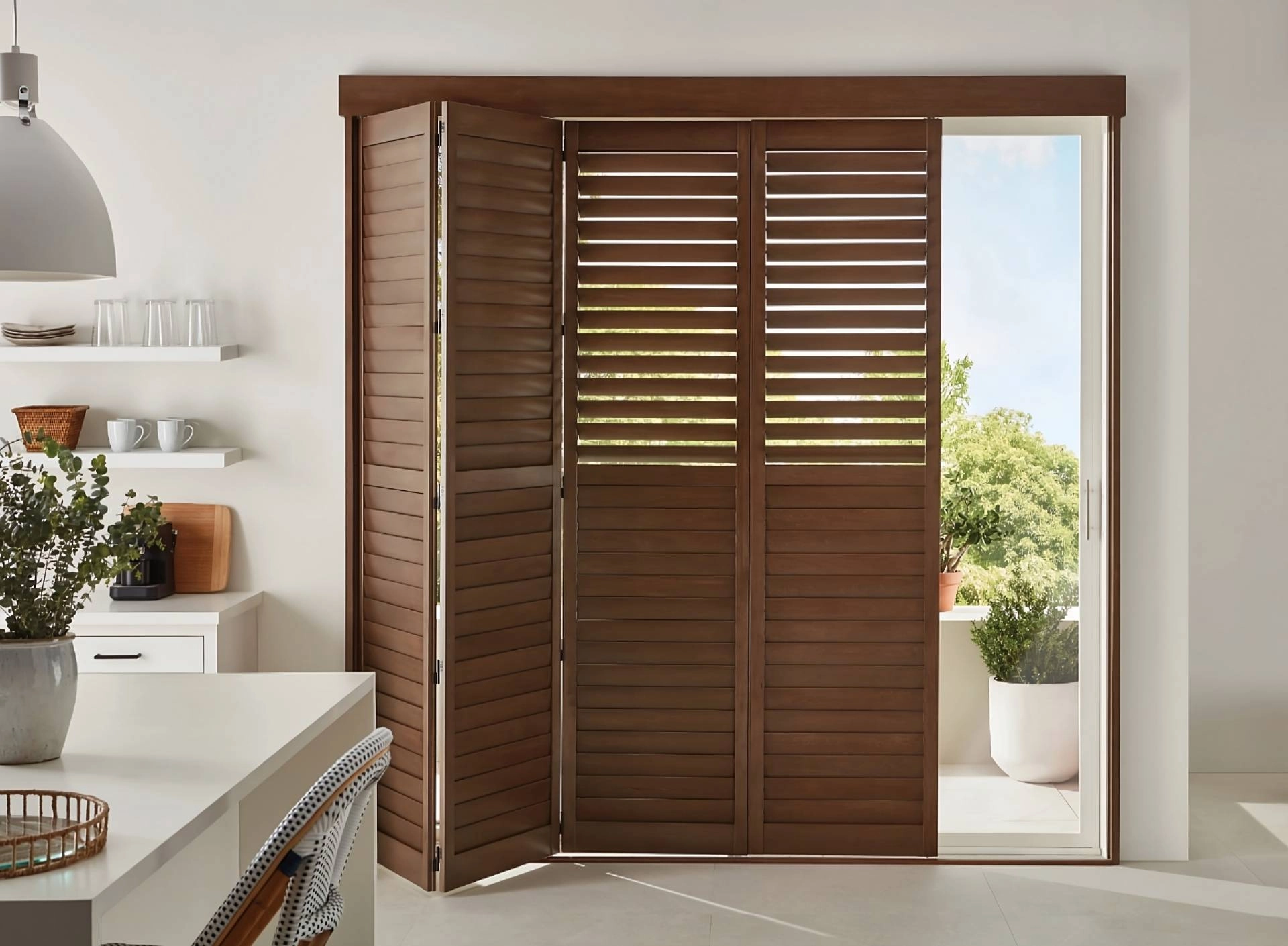 Incorporating elegance and sophistication with interior shutters is another option for sliding glass doors. They can operate in several ways, depending on your preferences, so they’re easy to open and maneuver. Like sliding door blinds, the louvers are easy to adjust for light and privacy. Since you can install shutters into the window frame, they’re excellent for conserving energy and can boost your home’s resale value.